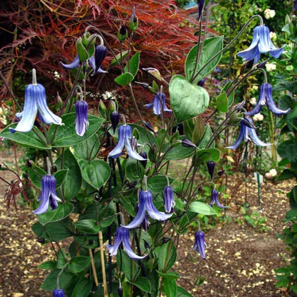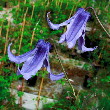 Zafír, német nemesítésű sötétkék klemátisz, mely illatos. Harang formájú virágai lágyan ringatóznak a nyári szélben. Cserépben is tartható fajta.